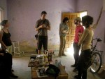 Sin embargo al entrar a la casa uno presiente una historia; podría ser, de vuelta, cualquier historia; una familia que tuvo que irse rápidamente y dejo el espacio allí cayéndose a pedazos, alguien que murió allí solo, cualquier historia. Lo primero que ocurre al entrar allí es intentar reconstruir esa historia, encontrar rastros que la develen ¿cuales fueron los últimos momentos en esa casa? ¿son los objetos en el espacio rastros de esos momentos? Unas bolas de goma rojas en el piso del patio, un cuarto lleno de electrodomésticos inservibles, una pila enorme de diarios cortados al lado del asador. Encontrar la evidencia material e intentar decodificarla. ¿Por que nadie se llevo todos esos electrodomésticos? ¿Quien tiro esas bolitas rojas en el piso y las dejo allí tiradas? Cada pieza, cada objeto tiene potencialmente significado para develar la historia. Las piedritas en cada escalón que sube a la terraza… ¿alguien las puso? ¿Responden a algún orden?